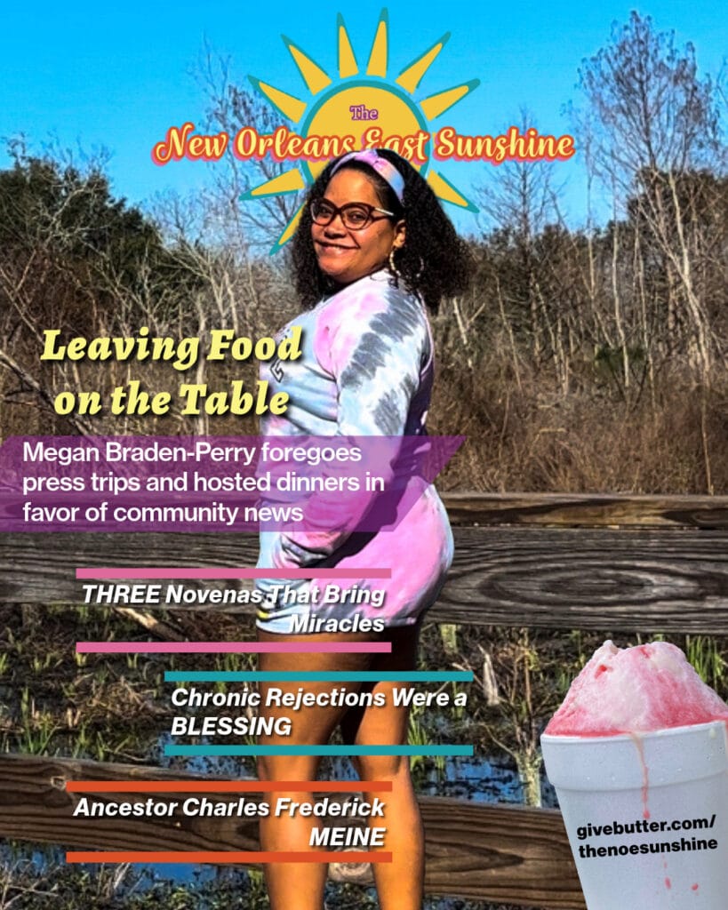 Guess what?! On May 19, 2025, I decided to make a newspaper for New Orleans East! The New Orleans East Sunshine Weekly, “uplifting and enlightening New Orleans East through good news.” Since then (today is 6/9/25), I’ve shared bits and pieces here and there about the founding. Basically that getting there is a whole testimony. So many puzzle pieces over the years, and now we have the finished product. Going to try to just explain what I think are God’s reasons behind some of these latest experiences.