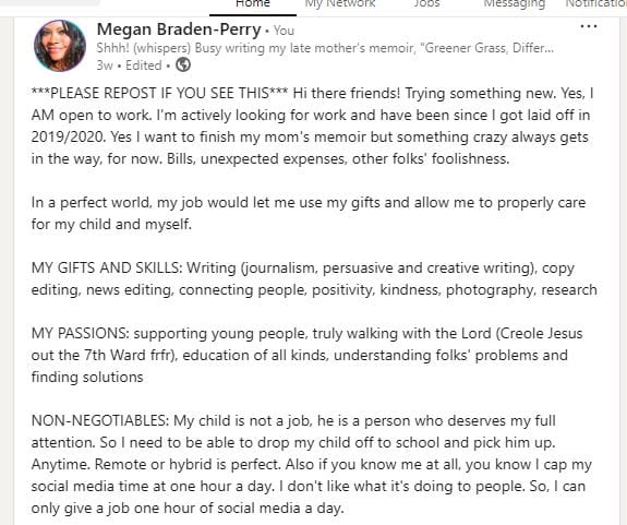 But the thing that made the day so horrible was that I came downstairs to see my beautiful doors were gone. Long story short, maybe this is something I’ll share in more depth with my newsletter subscribers (it’s free, no more than monthly!) my childhood home that I used to own is now owned by someone else and though I live in it, that someone else is making lots of changes to it. So I was already sad about not getting the job, and now my beautiful doors are gone and there’s a hideous AirBnB-style door and my service stairs are gone too. Everything is fucked. However, I ended up going a little viral on LinkedIn after sitting with myself and figuring out what I want from a job and what I can’t tolerate.